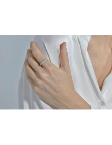 Sortija Plata Rodio Cuadrado Circonitas Blancas