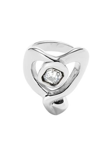 Anillo En Aleación de Metales Bañado En Plata de Ley con Corazon y Cristal