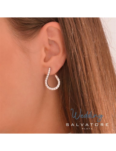 Pendientes Plata Rodio Pera Circonitas Blancas Brillantes