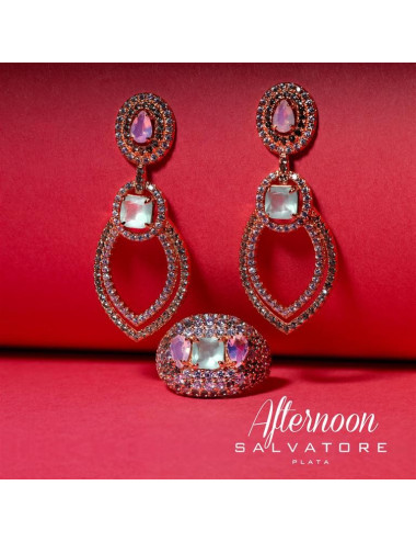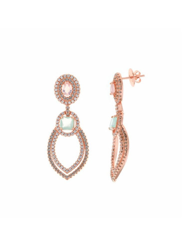 Pendientes Plata Chapado Rosa Hoja Circonitas Verde