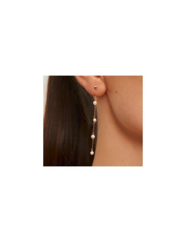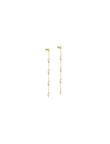 Pendientes largos de oro 18 kilates y perlas cultivadas,con cierres de presión de alta seguridad.