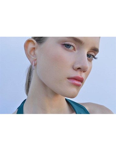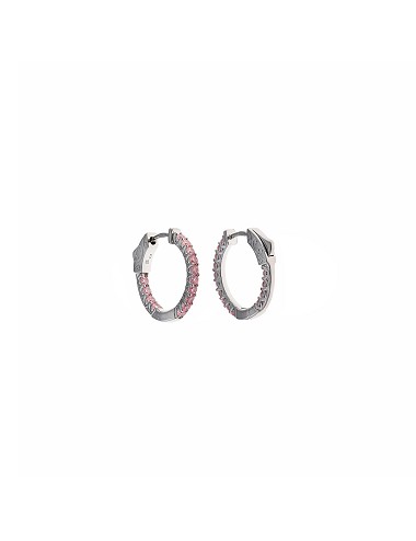 Pendientes Plata Rodio Aros Circonitas Rosa