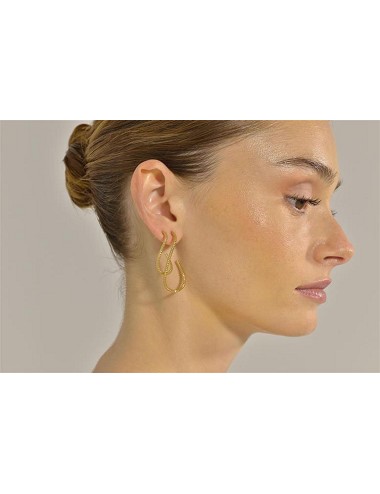 Pendientes Plata Chapado Dorado Aro Ovalo Retorcido Diamantado