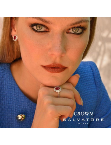 Pendientes Plata Rodioovalo Circonita Rubi