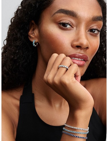 Da un toque de color a tu look con estos bonitos y delicados pendientes adornados con una fila de cristales de color azul aguamarina.