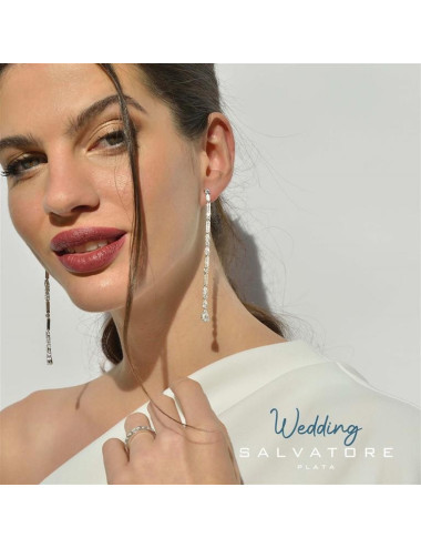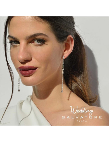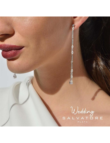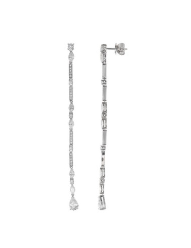 Pendientes Plata Rodio Tira Peras y Brillante