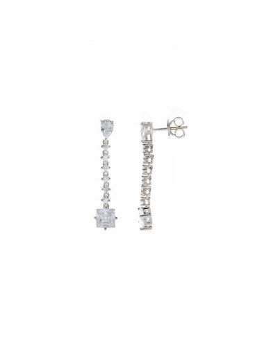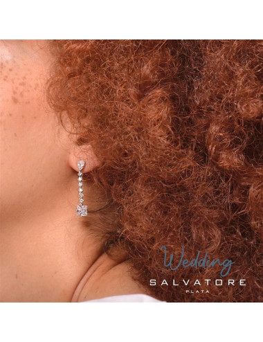 Pendientes Plata Rodio Tira Circo. Blancas Pera