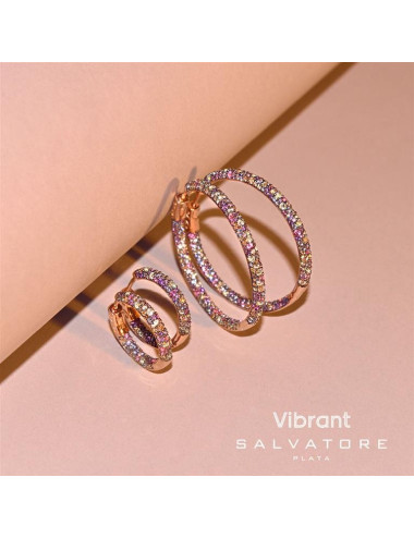 Pendientes Plata Chapado Rosa Circulos Circonitas Multicolor