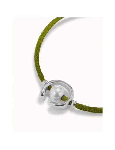 Pulsera Hilo Raton Verde Perla Baño Plata