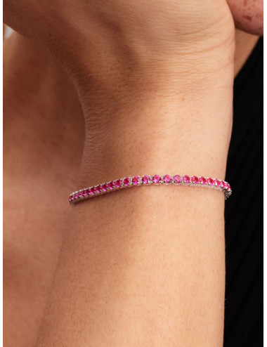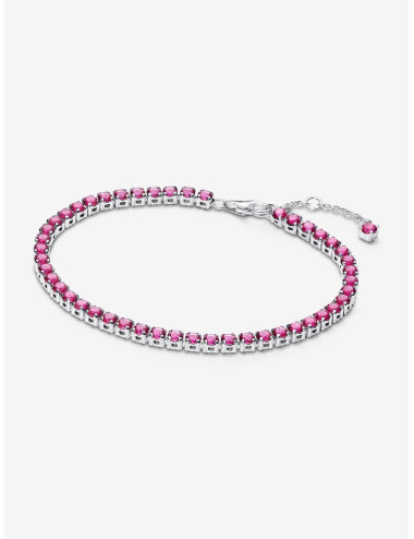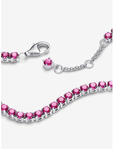 Agrega un toque de elegancia a tu look con una pulsera tenis sofisticada que se presenta con una fila de gemas redondas y una gema más pequeña colgando del cierre, un diseño perfecto para llamar la atención. Empieza tu colección con una joya atemporal.
